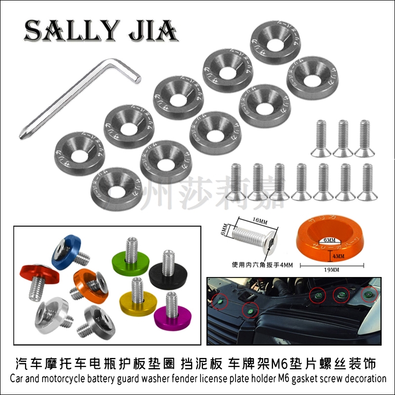规格:螺丝M6型号,通用型,可以装发动机的螺丝装饰及一些车型车牌架上的螺丝装饰,因为是改装通用的东西,请购买时对一下原车的螺丝螺纹规格,谢谢!