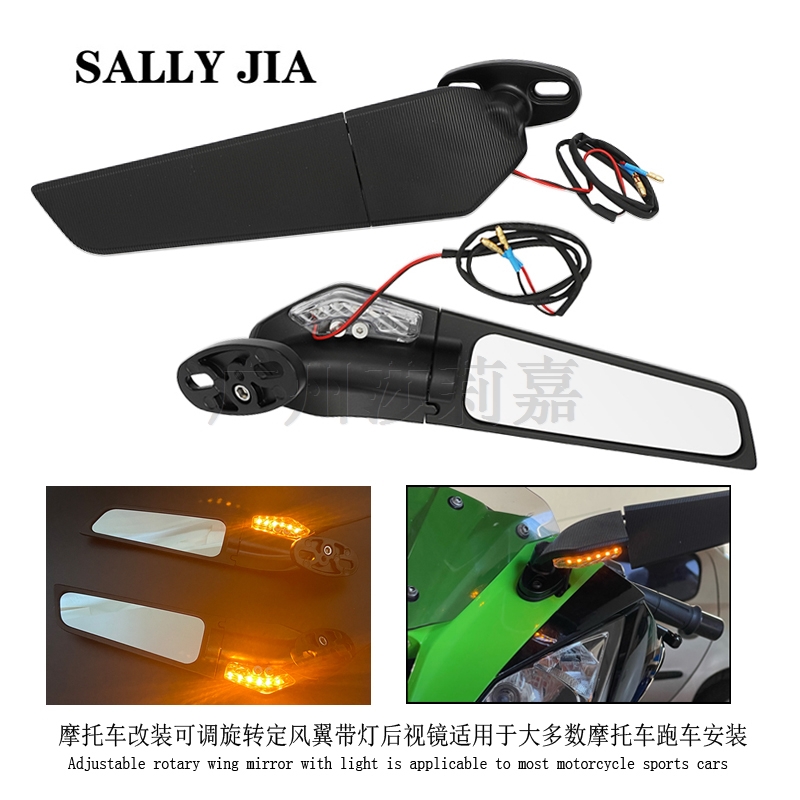 产品名称:可调定风翼带灯后视镜适用大多数摩托车跑车安装