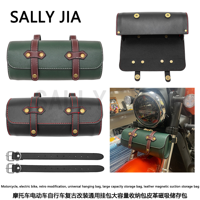 产品名称:摩托车电动车自行车复古改装通用挂包大容量收纳包皮革磁吸储存包