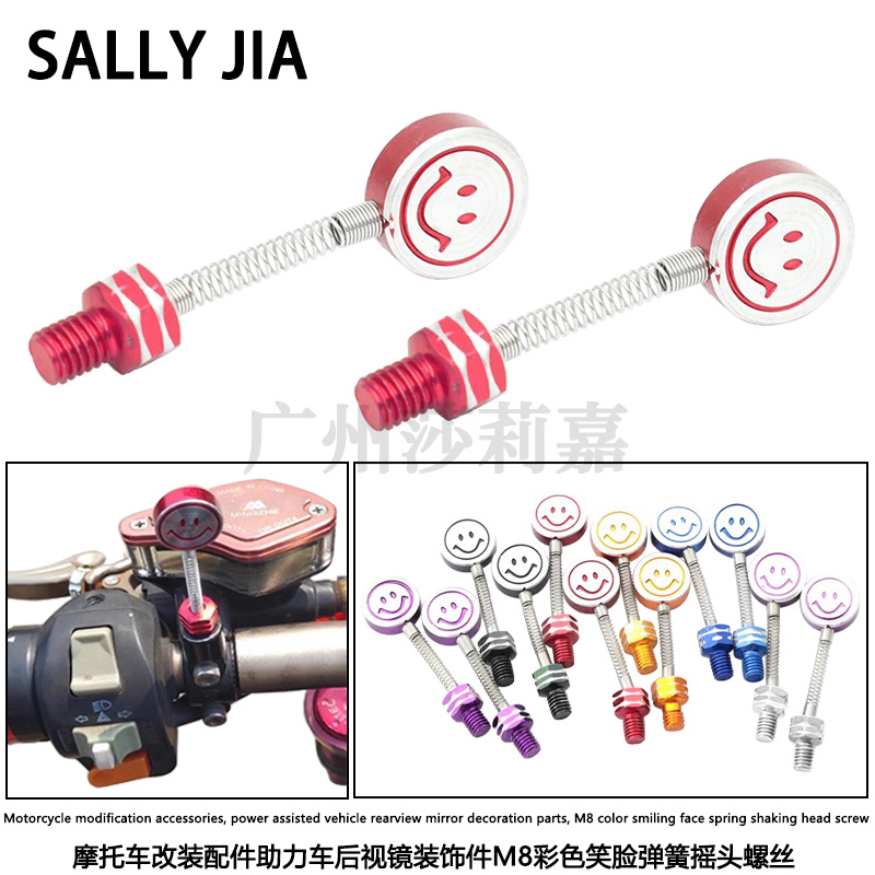 产品名称:摩托车助力车后视镜装饰M8彩色笑脸弹簧摇头螺丝